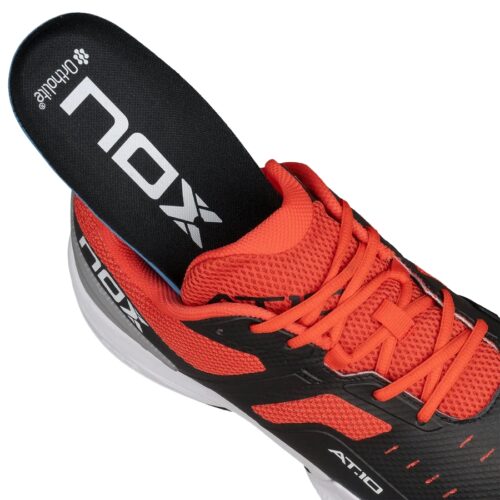 The Nox AT10 PRO Cup Black/Red Men padel shoes are designed to enhance your performance on the court while ensuring optimal comfort and health. Here are some detailed features: